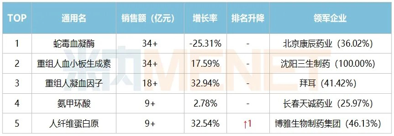 表5:2020年止血藥TOP5品種