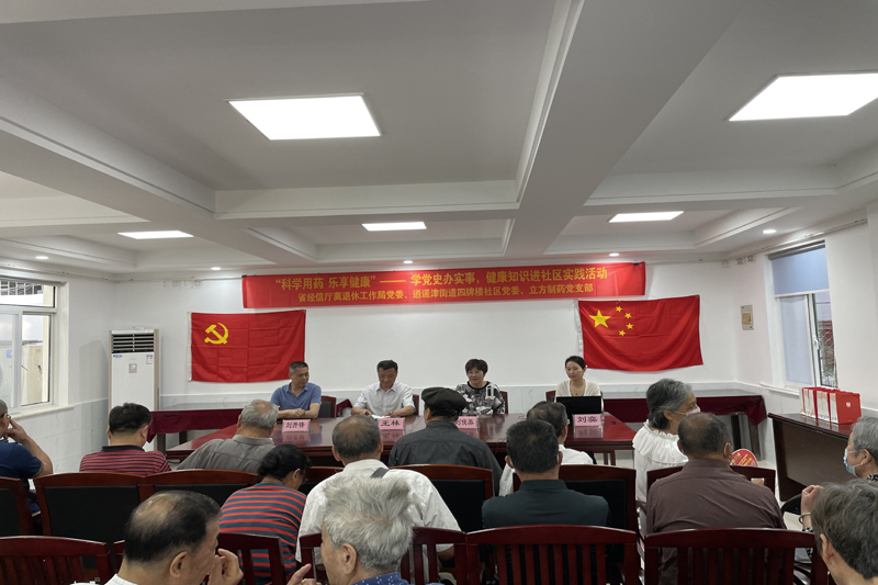 為慶祝黨建百年,深入貫徹學(xué)習(xí)習(xí)近平總書記在黨史學(xué)習(xí)教育動員大會的重要講話精神,落實我為群眾辦實事實踐活動要求,踐行科學(xué)用藥理念,省經(jīng)信廳離退休工作局黨委聯(lián)合逍遙津街道四牌樓社區(qū)黨委、合肥立方制藥股份有限公司黨支部,于6月4日在四牌樓冶金社區(qū)舉辦以“科學(xué)用藥-樂享健康”為主題的健康知識送社區(qū)的實踐活動。